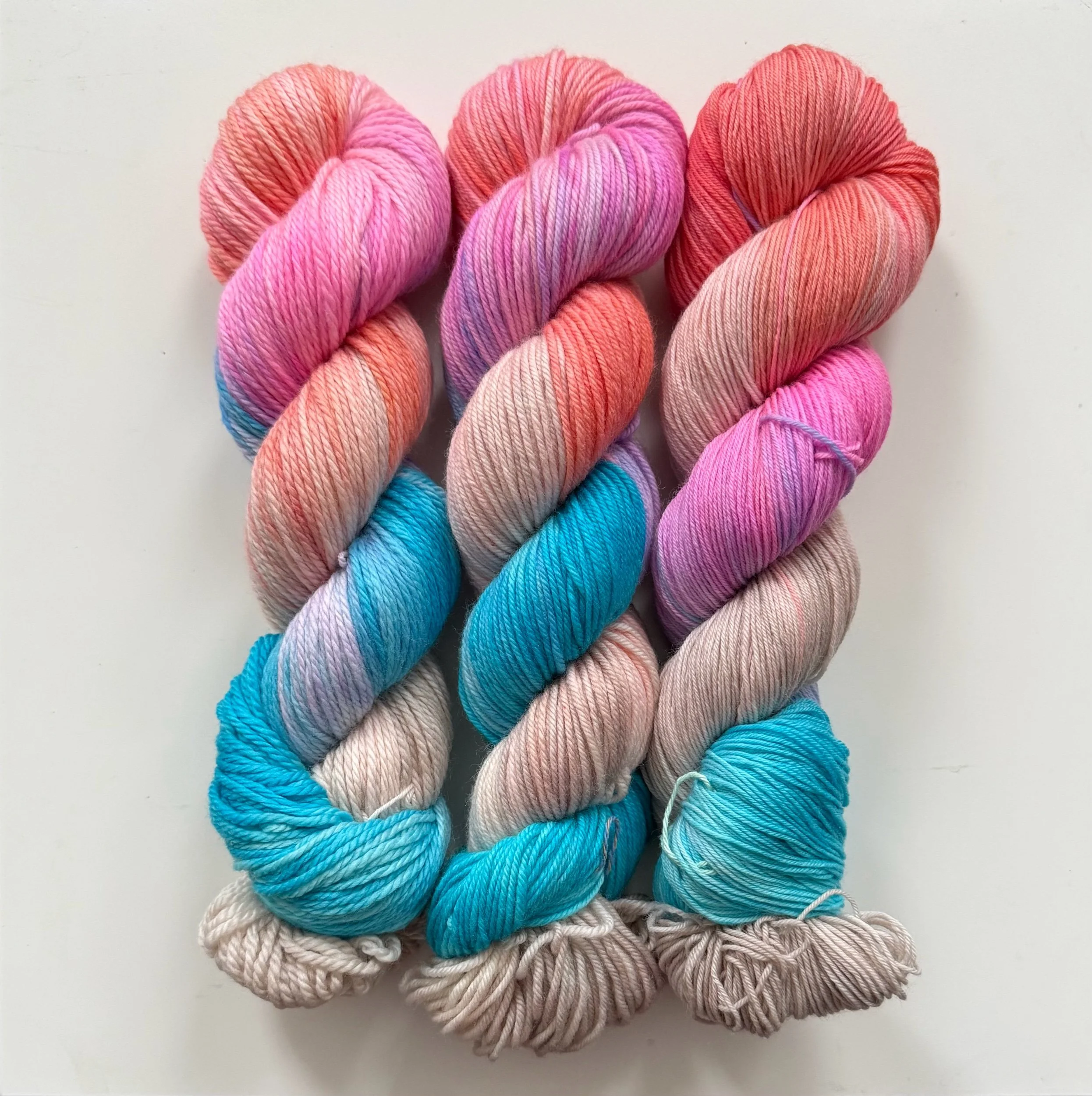 Hand dyed yarn, dyed with acid dyes for the most vivid color! This yarn come from a pet friendly home (cats and a dog), please keep all allergies in mind before ordering! Wash in cold or lukewarm water! While this yarn is superwash and can be washed using a machine, I recommend handwashing when you can!